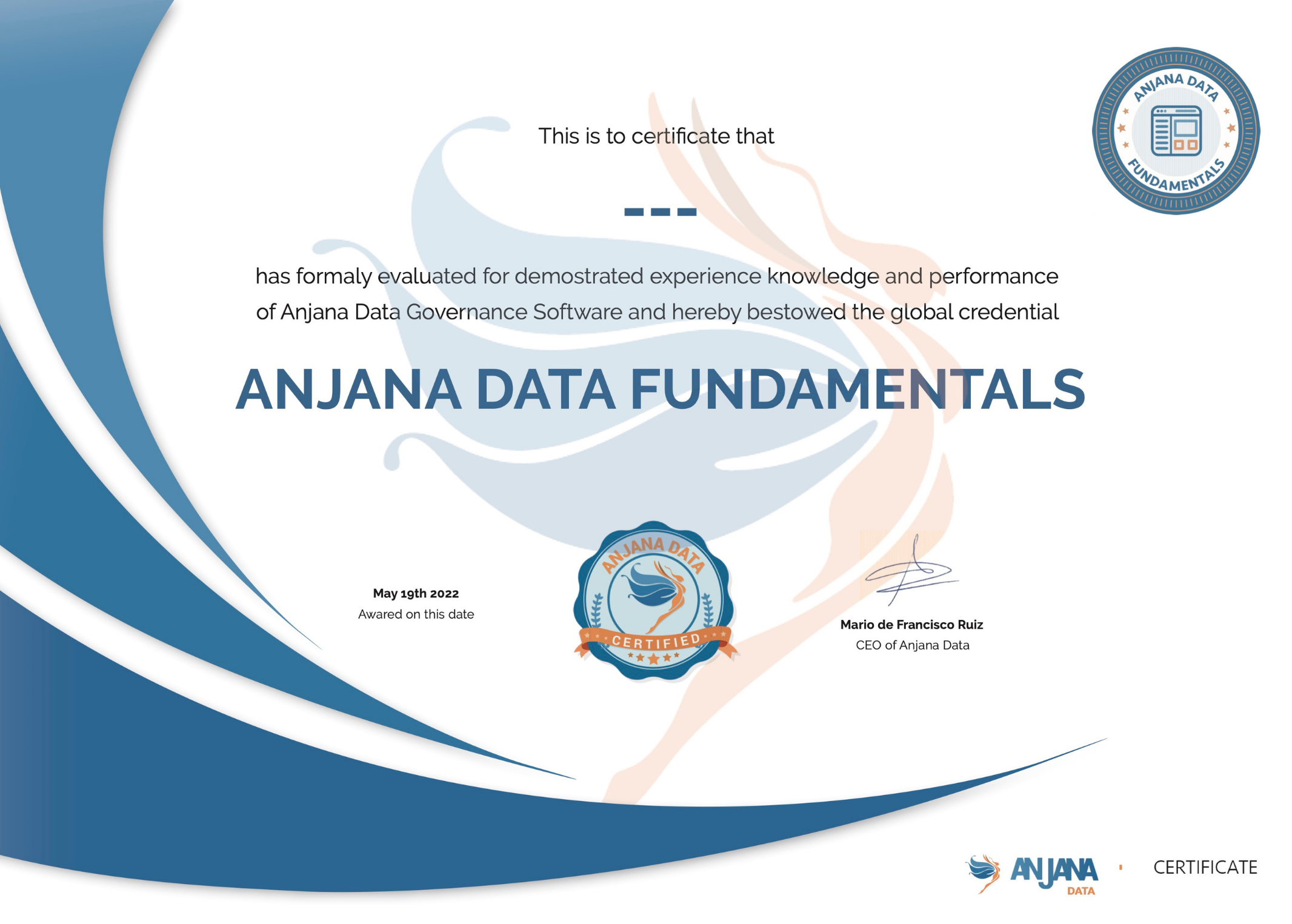 Por último, el fin de la certificación es avalar de forma pública y oficial que todos aquellos alumnos que la hayan superado son aptos y tienen los conocimientos y habilidades suficientes y necesarias para realizar las labores relacionadas con Anjana Data, desde su uso diario en una organización hasta la implantación y configuración completa de la plataforma.