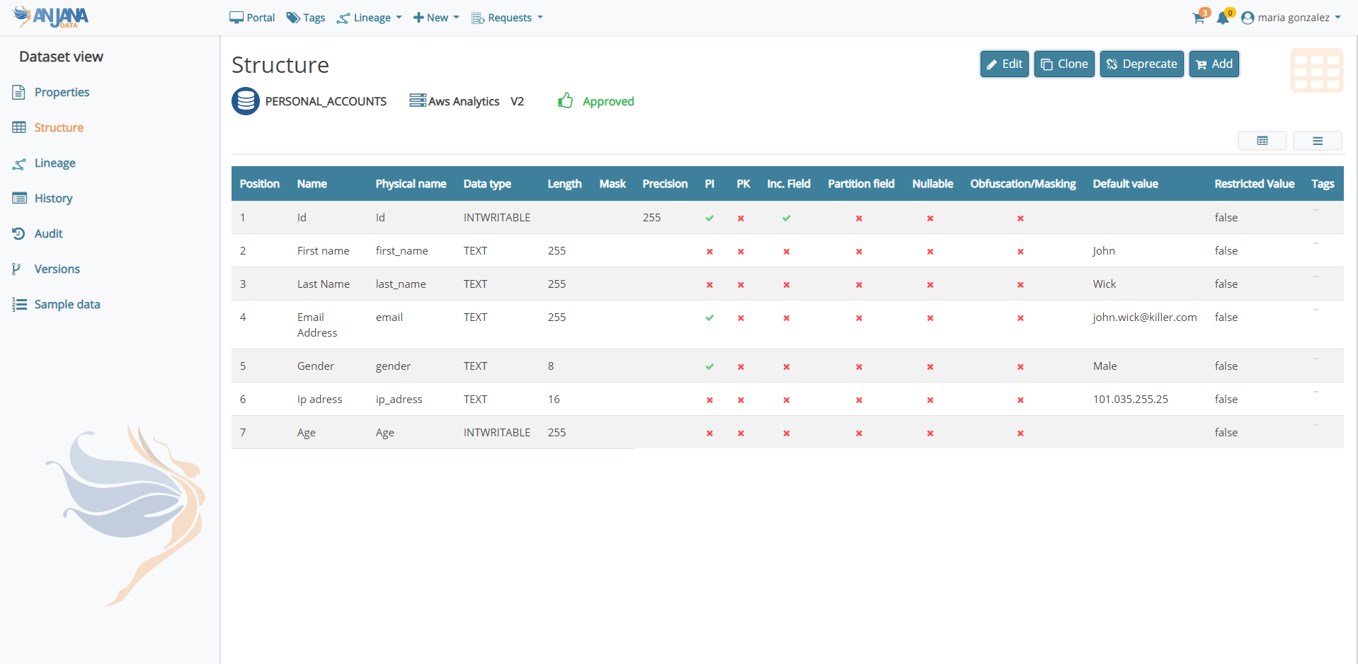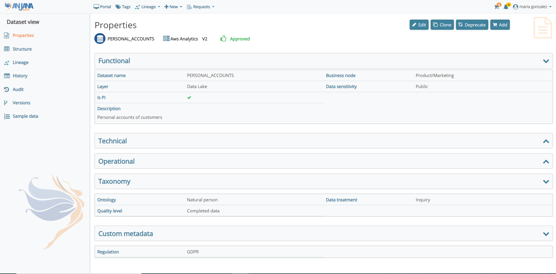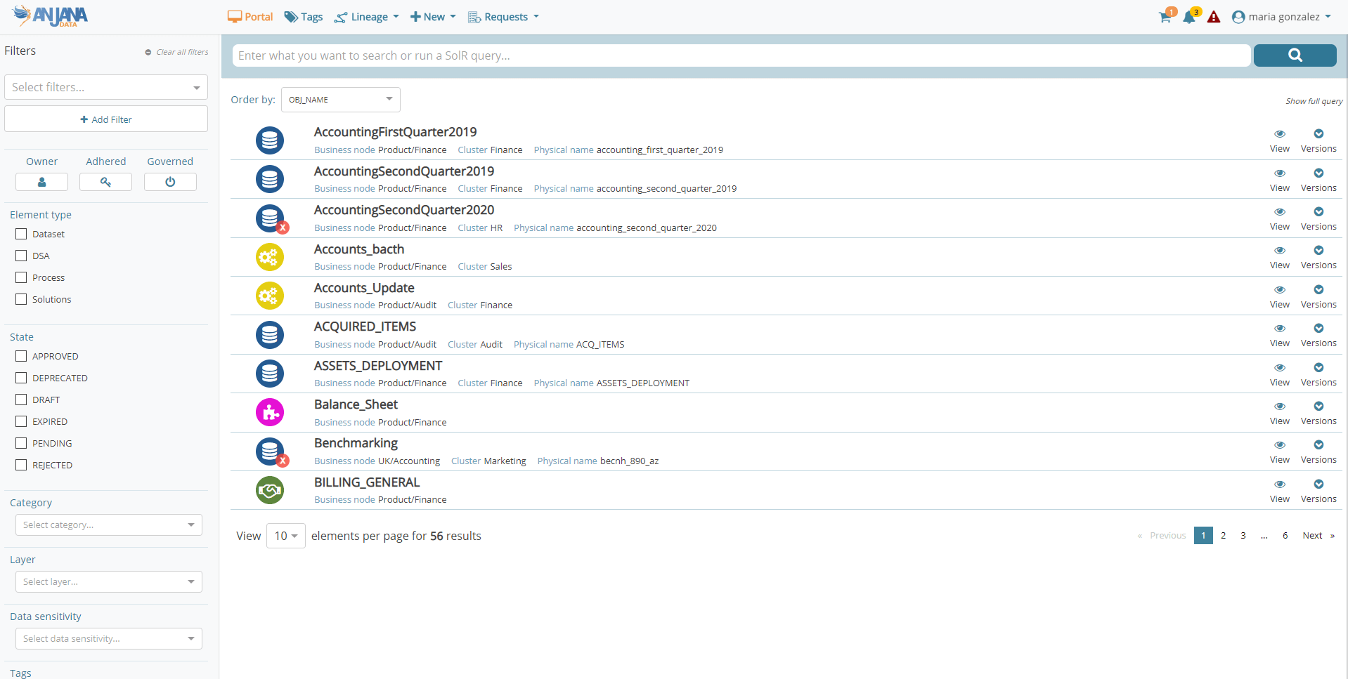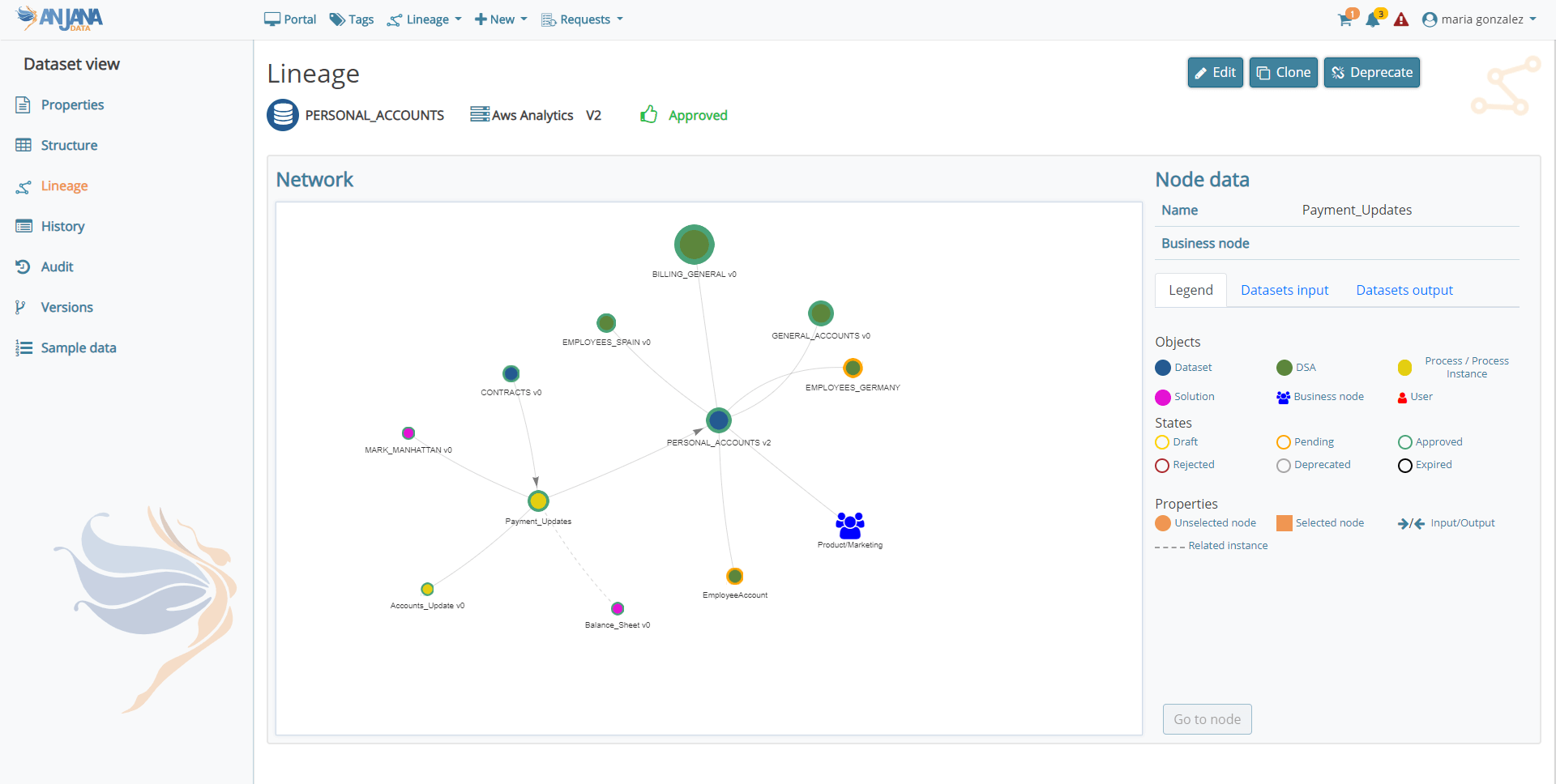 Con la premisa de entregar una versión de fácil usabilidad y que cumpla con la función de ser la solución central para el gobierno de los datos en una organización, Anjana Data presenta mejoras de experiencia e interfaz de usuario mediante cambios sustanciales en diferentes pantallas de la aplicación como el Portal de Datos, las vistas de detalle de los objetos, los grafos de linaje, la gestión de los workflows y el Panel de Administración.